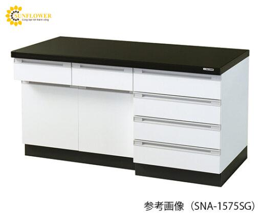 Bàn SNA-1575 SG với kích thước 750 x 1500 x 800 mm, trọng lượng 125 kg, mặt Cellon composite và cạnh PP 45 mm. Ván dăm trang trí melamine hai mặt, kéo PP, chịu tải 100 kg. Sản phẩm được vận chuyển, giao hàng và lắp đặt dễ dàng.
