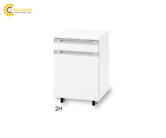 Bàn 2H với kích thước 450 x 450 x 670mm, trọng lượng 26kg, mặt trên và thân bằng ván ép trang trí melamine, kéo bằng PP. Sản phẩm được yêu cầu vận chuyển, giao hàng, lắp đặt riêng biệt. Liên hệ để biết thêm chi tiết.