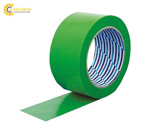 Mô tả ngắn: Băng keo màu xanh lá cây kích thước 50mm x 50m, độ dày 0,16mm. Chất liệu vải polyethylene, kết dính bằng acrylic. Độ bám dính 4,4N/10mm, độ bền kéo 60N/10mm. Sản phẩm bền, dễ cắt bằng tay, không dùng trực tiếp trên da. Không phải là băng cá.