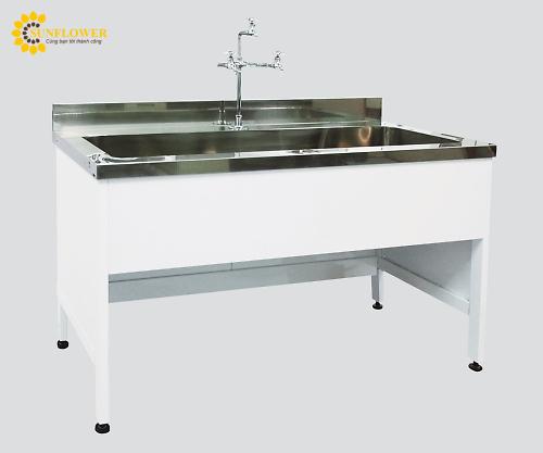 Bồn rửa EAN-1260 với kích thước 1200 x 600 x 800 mm, làm từ thép chống gỉ và sơn tĩnh điện. Thiết kế chống động đất, bẫy thoát nước và chân có thể điều chỉnh. Bồn đi kèm vòi hóa chất 3 cổng và bàn, lý tưởng cho nhu cầu vệ sinh công nghiệp.