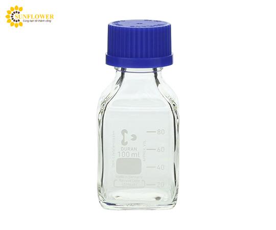 Dung tích 100mL, nắp màu xanh lam, sản phẩm được làm từ chất liệu thủy tinh borosilicat DURAN (R) và nắp với vòng cắt lỏng làm từ polypropylene. Với tiêu chuẩn vít GL 32, sản phẩm có thể hấp tiệt trùng một cách an toàn và hiệu quả.