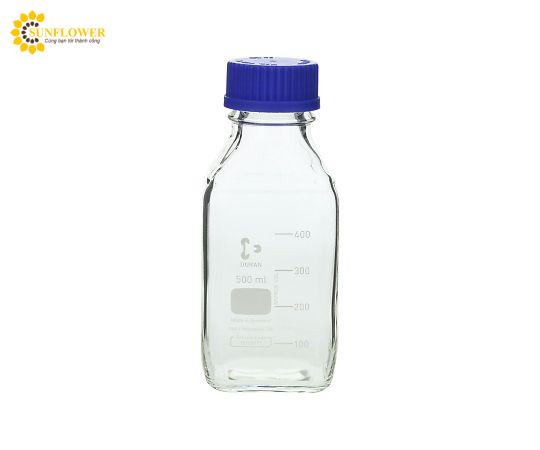 Sản phẩm là lọ thủy tinh borosilicat 500mL với nắp màu xanh lam, chất liệu PP. Với kích thước tiêu chuẩn GL 45 và vòng cắt lỏng PP, sản phẩm phù hợp cho hấp tiệt trùng. Dễ sử dụng và bảo quản các loại dung dịch hóa học và sinh học.