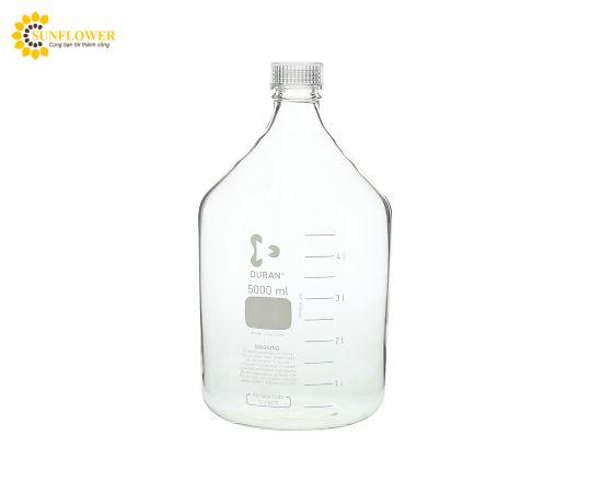 Chai thủy tinh mã số 017200-50003 dung tích 5000 mL, nắp trong suốt, đường kính trong 30 mm, đường kính ngoài x cao 182 x 330 mm. Tiêu chuẩn vít GL-45, chất liệu Duran chất lượng cao. Thích hợp cho hấp tiệt trùng, tiệt trùng nhiệt khô và có thể đục chai.