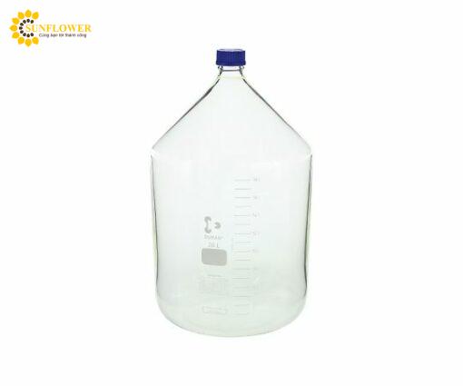 Bình thủy tinh dung tích 20000mL với đường kính ngoài φ288mm và chiều cao 505mm. Được thiết kế theo tiêu chuẩn lỗ vít GL-45, nắp màu xanh. Đường kính trong miệng là φ30mm. Lưu ý: Nếu sử dụng trong quá trình khử trùng bằng nồi hấp, cần tháo nắp hoặc nới lỏng nhiều hơn một lần. Thích hợp cho ti