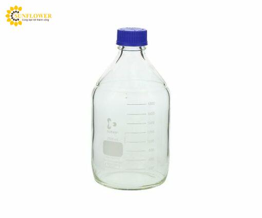 Chai thủy tinh mã số 017200-2000 với nắp xanh lam, dung tích 2000 mL, đường kính trong φ 30 mm. Tiêu chuẩn vít GL-45, kích thước φ 136 x 260 mm. Chai Duran có thể hấp tiệt trùng, tiệt trùng nhiệt khô và đục chai mà không cần tháo nắp.