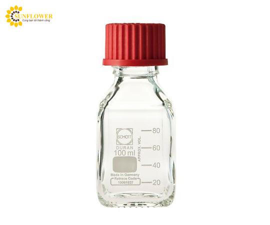 Chai dạng vặn có hình vuông màu trắng DURAN với nắp màu đỏ 100mL SCHOTT DURAN 017230-1001 A