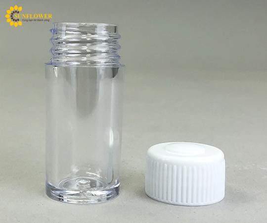 Chai lọ SS-15 có dung tích 15mL, thiết kế nhỏ gọn với đường kính trong miệng φ19,8mm, đường kính thân φ28,0mm và chiều cao 63,3mm. Chất liệu polystyrene cho thân và polypropylene cho nắp. Sản phẩm được bán lẻ theo số lượng 1 cái, phù hợp cho nhu cầu sử dụng cá nhân.