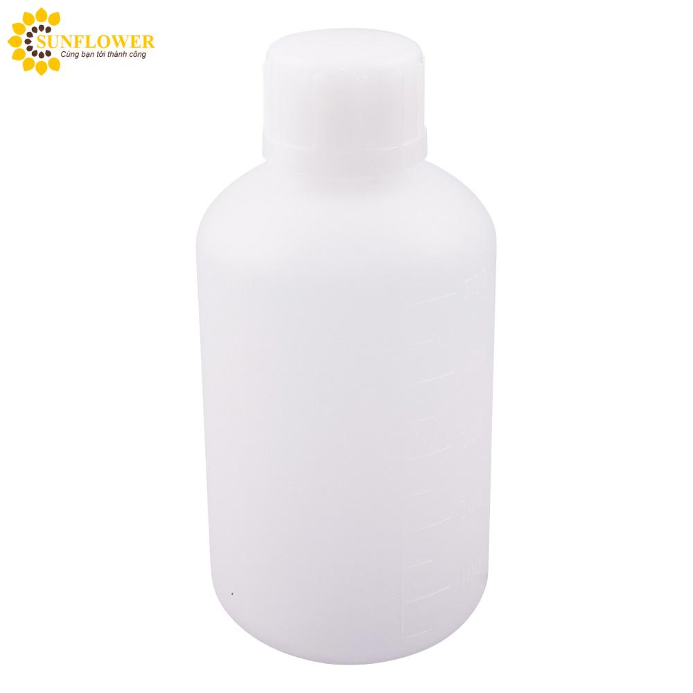 Chai tiêu chuẩn dung tích 500mL, chất liệu HDPE và PP chắc chắn, phục vụ nhiều mục đích. Nắp bên trong làm từ LLDPE. Thích hợp sử dụng trong khoảng nhiệt độ từ 0 đến 70oC. Thang đo chi tiết, giúp đo lường chính xác. Một chai đầy hứa hẹn cho nhu cầu của bạn.