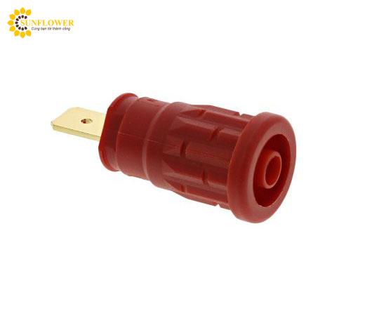 Ổ cắm bấm an toàn CEI 61010 với đầu nối mấu 6,3mm, tuân thủ DIN 46 244, đồng thau mạ vàng. Dễ gắn trên mặt phẳng dày từ 1 đến 10mm. Điện áp định mức lên đến 1000V ac/dc, dòng cho phép 32A. Màu đỏ, dành cho nữ, chiều dài 3mm.