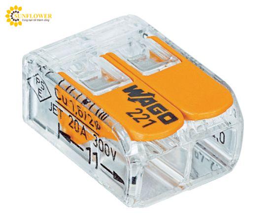 Đầu nối dây 1 chạm cho 2 lỗ (màu cam, 0.14 – 3.5mm2, 100pcs/ box) WAGO WFR-2