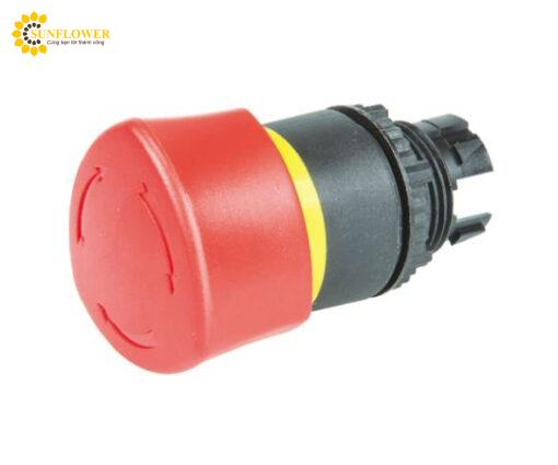 Đầu nút dừng khẩn cấp không chiếu sáng, tuân thủ tiêu chuẩn IEC 60947-5/ISO 13850. Thiết kế màu vàng dễ nhận biết từ bên cạnh. Sử dụng với kẹp và khối tiếp xúc điện, có thể nhả ấn và xoay, với gờ nhựa đen giữ vị trí.