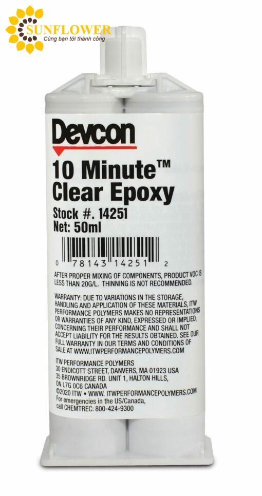 Devcon® 10 Minute Epoxy 14251 CLEAR – Keo epoxy 10 phút, chất kết dính đa dụng nhanh, ứng dụng rộng rãi. Sản phẩm chứa trong ống 50ml.