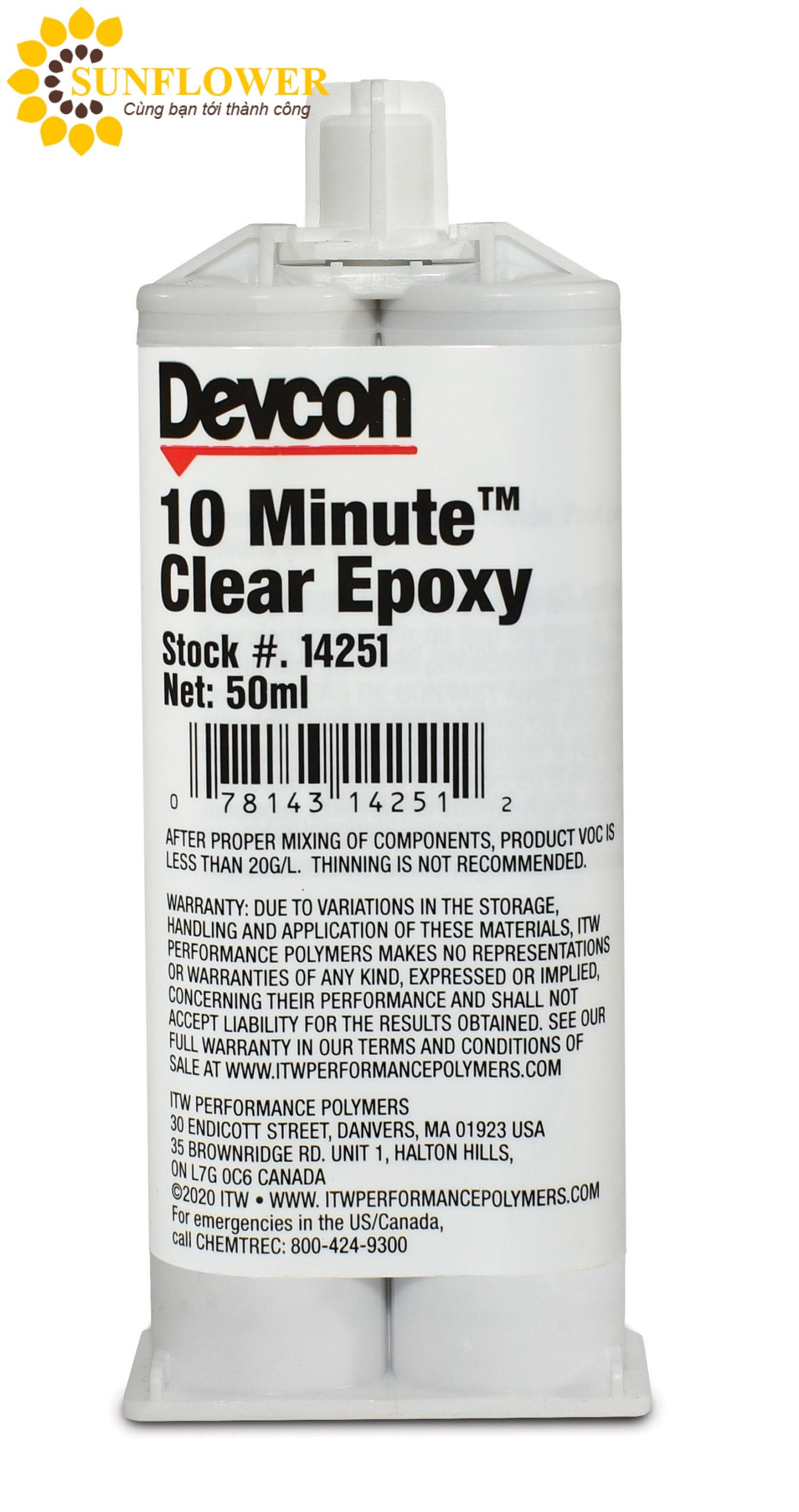 Devcon® 10 Minute Epoxy 14251 is a rapid-curing, general purpose adhesive/encapsulant, 50ml cartridge. Devcon epoxy 14251 has clear color.