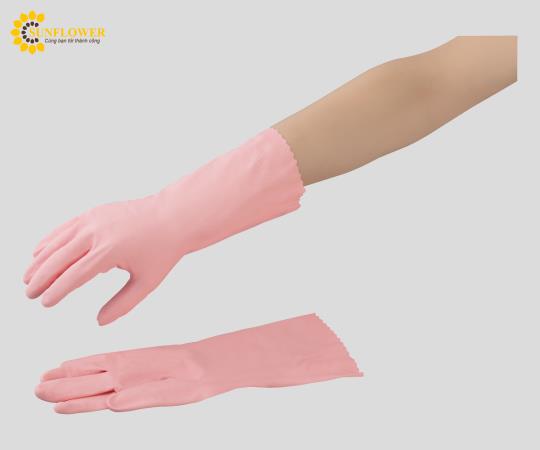 Bộ găng tay với chất liệu cao su nitrile và rayon, đảm bảo an toàn vệ sinh thực phẩm. Được thiết kế trung bình với vải có đốm, chiều dài 320mm, độ dày 0,4mm. Kích thước S, màu hồng, mỗi bộ gồm 1 cặp.