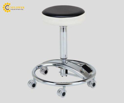 Ghế ngồi chân thép mạ crom, da PVC bền đẹp. Đường kính ghế 450mm, có thể điều chỉnh độ cao từ 530mm đến 680mm. Trọng lượng nhẹ 6,5kg. Thiết kế bước tiện lợi, phù hợp cho không gian làm việc hiện đại. Màu đen tinh tế. Mã sản phẩm: CTC-ST.