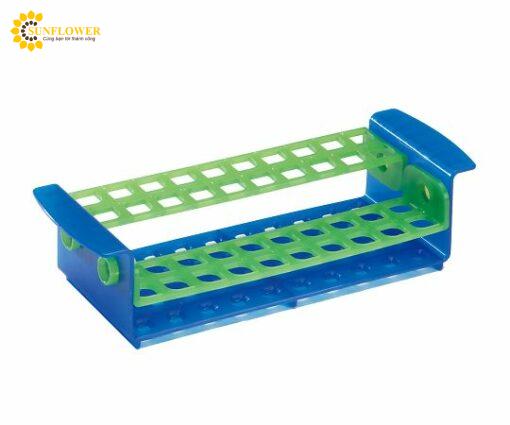 Sản phẩm là hộp ống đựng mẫu xanh lam/xanh lục chất liệu PP, kích thước 309x107x77mm, đường kính lỗ 17mm, chứa 40 ống 5/10mL. Thiết kế hấp tiệt trùng, đi kèm 2 giá đỡ ống. Sản phẩm tiện dụng cho nhu cầu lưu trữ mẫu trong phòng thí nghiệm.