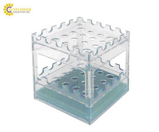 Được thiết kế linh hoạt, giá đỡ và chân đế đa năng này có thể sử dụng với 4 mặt và 2 nấc cho pipet. Với kích thước 105 x 105 x 150mm, lỗ đường kính φ10mm/12 chỗ và φ13mm/4 chỗ. Sản phẩm được làm từ PC chất lượng cao, trong suốt. Loại P-1.