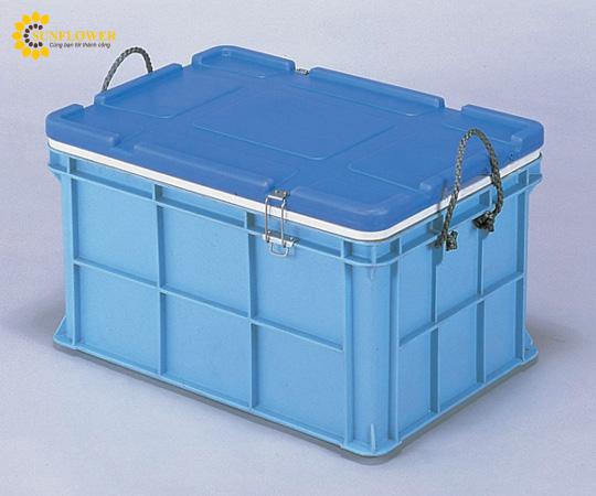 Hộp đựng hàng màu xanh lam, model 75H, với chất liệu chốt / lớp phủ cromat mạ và thân, nắp làm từ PP. Kích thước bên ngoài 656 x 456 x 356 mm và bên trong 550 x 356 x 280 mm, dung tích 54L. Sản phẩm chất lượng và tiện ích.