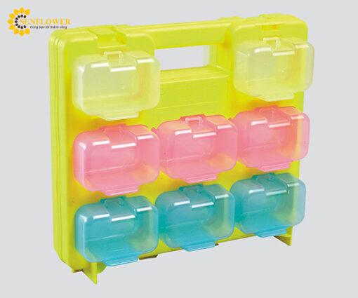 Hộp chứa phụ kiện (khung màu vàng, hộp nhỏ hồng x 6pcs, xanh lam x 6pcs, vàng x 4pcs, 290 x 50 x 268mm) JEFCOM SPS-2916YL