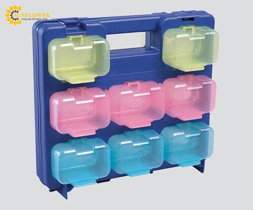 Hộp chứa phụ kiện (khung màu xanh lam, hộp nhỏ hồng x 6pcs, xanh lam x 6pcs, vàng x 4pcs, 290 x 50 x 268mm) JEFCOM SPS-2916BL