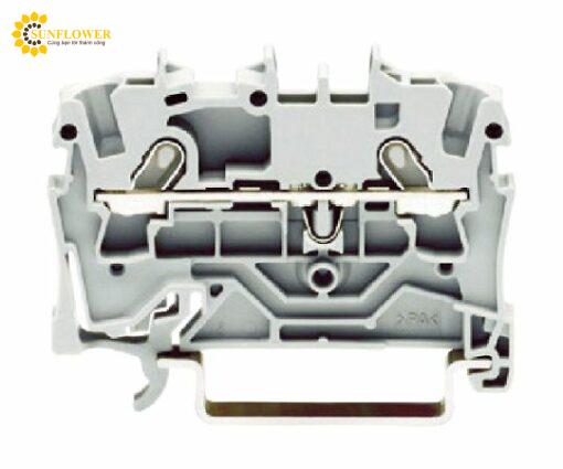 Khối thiết bị đầu cuối kiểu lò xo tiện ích, giúp tiết kiệm thời gian và không gian làm việc. Dễ dàng kết nối dây đặc và dây bện bằng đai, không cần nới lỏng hay siết lại. Sử dụng để kết nối dây bên trong bảng điều khiển và hộp rơ le. Màu xám, chiều rộng 48,5mm.