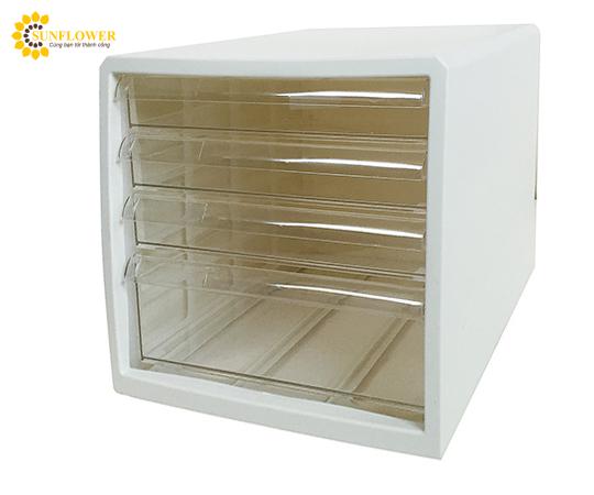 Hộp đựng đồ F4 với 3 ngăn kéo sâu và 1 ngăn cạn, màu trắng thanh lịch. Chất liệu Polypropylene và Polystyrene chất lượng cao. Kích thước ngoài 336 x 277 x 256mm, kích thước trong phù hợp với nhiều vật dụng. Là lựa chọn lý tưởng để tổ chức không gian và bảo quản đồ dùng.
