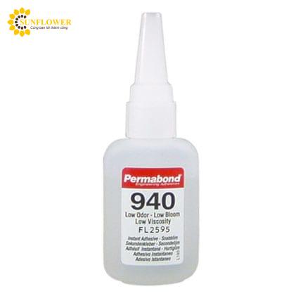 Permabond 940 là loại keo ethyl cyanoacrylate. không mùi, không để lại khói trắng trên bề mặt, khô theo cơ chế alkoxy, tạo ra môi trường làm việc thân thiện hơn cho người gia công. Các loại keo cyanoacrylate thông thường, mặc dù có thể kết dính tốt các bề mặt nhưng sễ tạo ra các màng khói trắng bên cạnh đường kết dính. Permabond 940 có khả năng loại bỏ các mảng khói trắng đó và trở thành một phần hoàn hảo của bề mặt kết dính. Chất kết dính rất ổn định, có hiệu suất kết dính đảm bảo về cả chất lượng và độ bền.