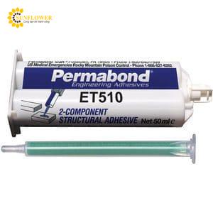 Permabond ET510 là loại keo epoxy hai thành phần, tỷ lệ 1:1. Keo khi khô khá dẻo với khả năng kết dính tốt trên nhiều loại bề mặt như gỗ, kim loại, đồ gốm sứ và một số loại nhựa và composite. Keo khô nhanh ở nhiệt độ phòng, có thể chuyển pha gia công chỉ trong vòng 20-40 phút. Một khi khô, keo có thể chống chịu tốt với hóa chất và các tác nhân khác đến từ môi trường.