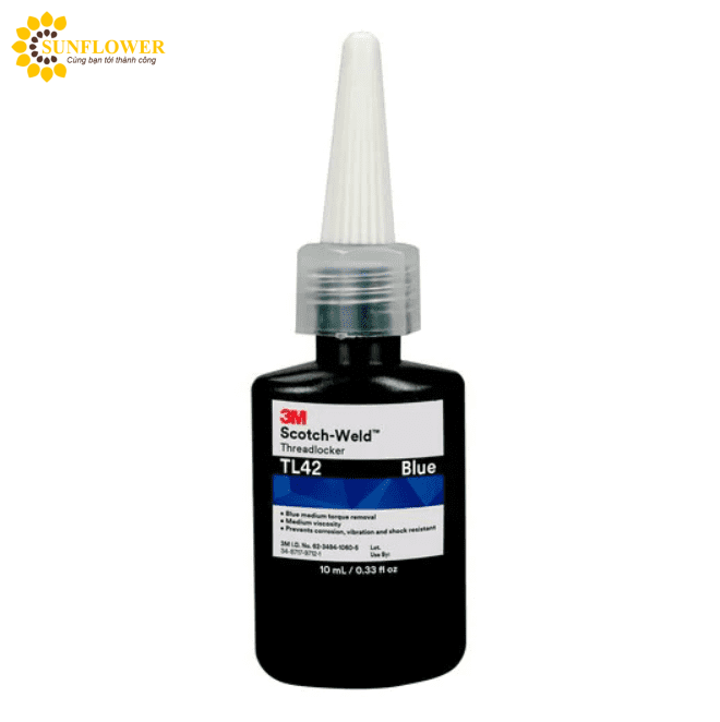 Keo khóa ren 3M Scotch-Weld TL42 có độ bền trung bình, được sử dụng trong nhiều ứng dụng, có thể tháo rời bằng dụng cụ cầm tay, lý tưởng cho bu lông trong cửa một số thiết bị và bu lông trong hệ thống thủy lực. Nó cũng có thể được sử dụng trên hộp số / bu lông trục truyền động, vít nắp đậy ổ trục, vít chìm và bu lông con lăn băng tải.