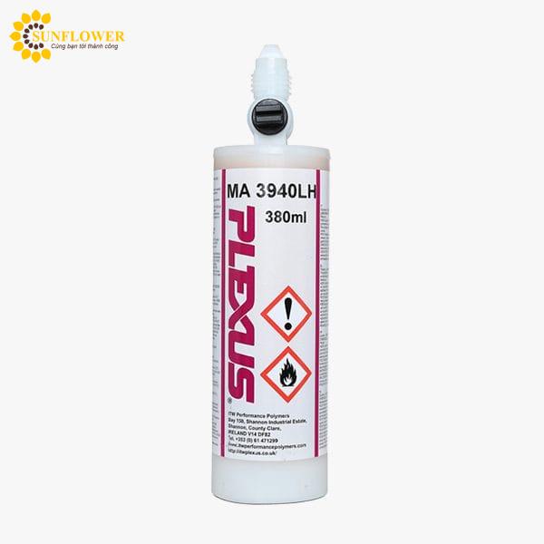 Plexus® MA3940LH là thế hệ mới của chất kết dính methacrylate hai thành phần đông kết nhanh được thiết kế đặc biệt để lắp ráp cấu trúc của các bộ phận ô tô tiên tiến. Kết hợp theo tỷ lệ 10:1, nó có thời gian tác dụng từ 3 đến 6 phút và đạt 75% sức mạnh tối thượng trong 8 đến 10 phút. Sau khi trộn, Plexus MA3940LH đông cứng nhanh chóng để tạo thành một liên kết dẻo dai, đàn hồi với độ bền cắt, bong tróc, mỏi và va đập tuyệt vời trong phạm vi nhiệt độ rộng. Ngoài ra, sản phẩm này còn có độ dẻo dai vượt trội ở nhiệt độ dưới -17°C. Plexus MA3940LH có màu trắng nhạt và được cung cấp dưới dạng hộp sẵn sàng sử dụng, thùng 5 gallon (20 lít) hoặc thùng 50 gallon (200 lít) để phân phối dưới dạng gel không chảy xệ.