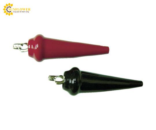 Bộ kẹp pin màu đỏ và đen dành cho sạc, đo lường điện và nối đất. Xếp loại (A): 20, chiều dài tổng thể 94mm, kích thước mở tối đa 17mm. Điện trở cách điện: DC500V100MΩ trở lên. Sản phẩm bao gồm 1 bộ mỗi màu đỏ và đen, có thể sử dụng với công cụ uốn khuyên Hozan P-706. Chất liệu/h