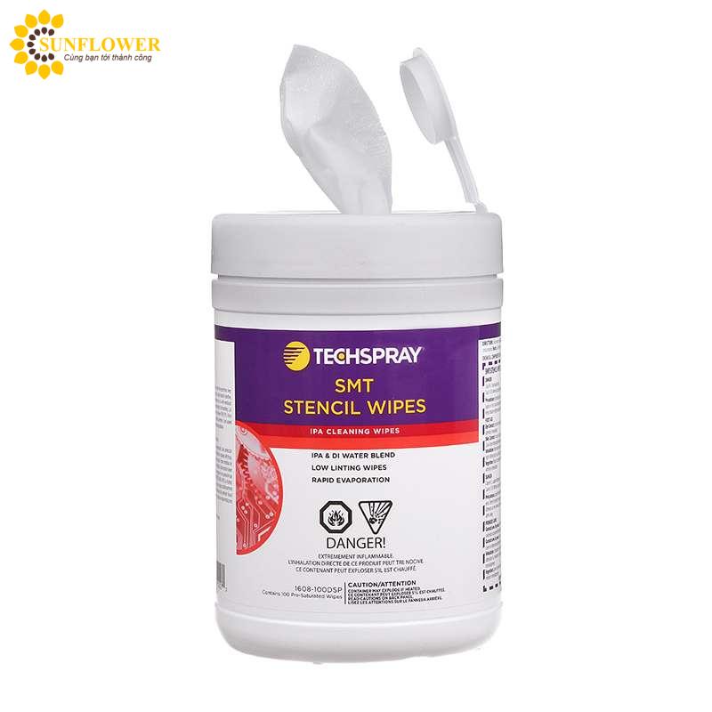 Khăn Lau Tẩm Cồn Isopropyl Techspray 1608-100DSP là sản phẩm chất lượng với 70% IPA tinh khiết và 30% nước DI, giúp lau sạch hiệu quả. Với độ ẩm lý tưởng, sản phẩm này phù hợp cho việc vệ sinh và sửa chữa máy móc, linh kiện điện tử.