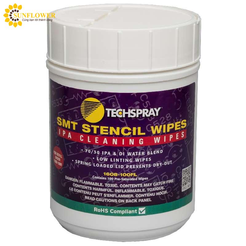 Khăn Lau Tẩm Cồn Isopropyl Techspray 1608-100FL là sản phẩm chất lượng với 70% IPA tinh khiết và 30% nước DI, giúp làm sạch hiệu quả. Vật tư Sunflower mang đến sự tiện lợi và hiệu quả cho công việc làm sạch của bạn.