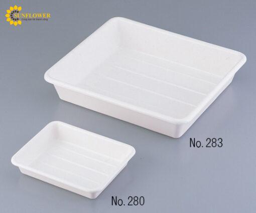 Dòng sản phẩm No.283 có kích thước bên ngoài 420 x 375 x 85 mm và bên trong 350 x 300 x 80 mm, được làm từ chất liệu PVC chất lượng cao (nhựa vinyl clorua). Sản phẩm đáp ứng nhu cầu sử dụng đa dạng với thiết kế chắc chắn và tiện lợi.
