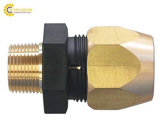 Sản phẩm là ống nối đồng thau kích thước 20A x 3/4, phù hợp với ống có đường kính ngoài từ 19mm đến 26mm. Với chiều dài 74mm và đường kính tối đa 47,5mm, sản phẩm có áp suất làm việc tối đa 2 MPa, với đai ốc và vít bằng đồng.