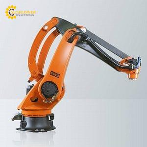 The KR 40 PA picks and packs your goods in record time. It can palletize products with a weight of up to 40 kilograms and reach net stacking heights of up to 1.8 meters; all in a very small space. Cycle times are shortened significantly thanks to its low weight.