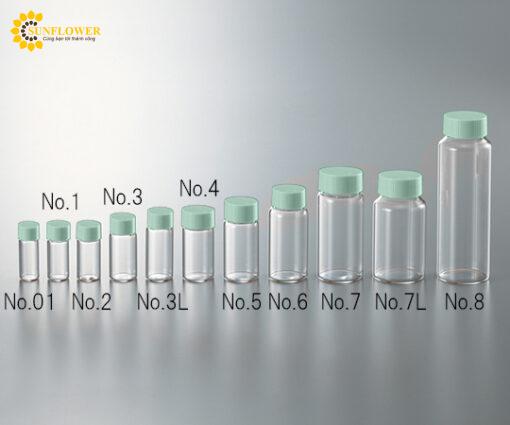 Lọ thủy tinh (20mL, nắp màu xanh lá cây, loại ống vít, 50 cái) Maruemu No.5 (Code number: 0101-0747)