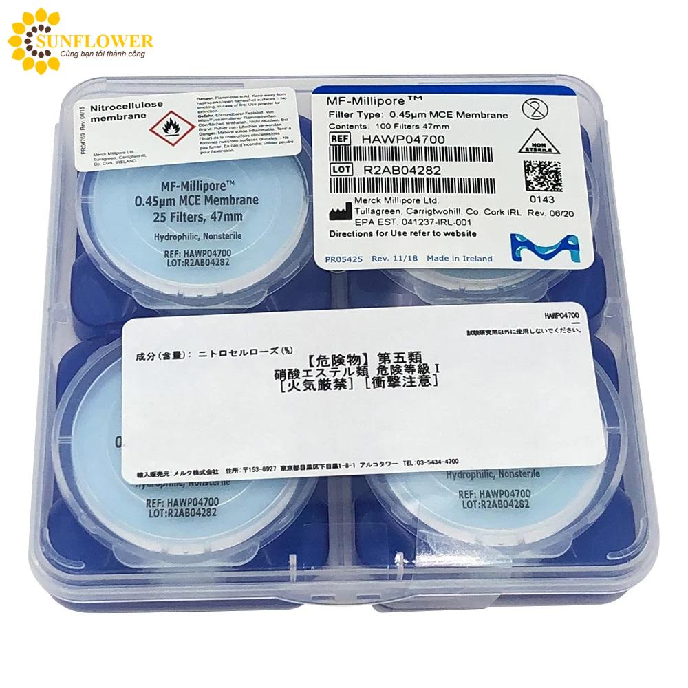 Màng lọc (ester hỗn hợp xenlulo, 0,45μm×φ47mm, 100pcs) Merck Millipore HAWP04700