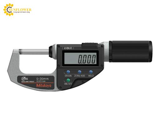 Máy đo độ chính xác cao với phạm vi đo từ 0 đến 30mm, hiển thị tối thiểu 0,001mm trên màn hình LCD rõ ràng. Thiết kế chống nước IP65, nguồn cung cấp bằng pin oxit bạc SR 44 giúp máy hoạt động mạnh mẽ và bền bỉ.