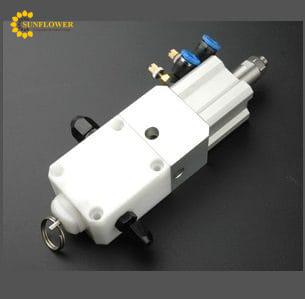 Metering valve. It is suitable for low viscosity adhesive such as anaerobic fluid. The precision degree of discharge is within ±2% as it is a volume measuring type. (0.01~0.25cc/shot)