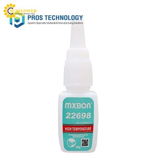 Keo MXBON 22698 là loại chất kết dính Cyanoacrylate có độ nhớt trung bình, ít khói, ít mùi. Đây là loại keo cyanoacrylate ít khói ít mùi đầu tiên có khả năng chịu được nhiệt độ lên đến 150 độ C khi tiếp xúc kéo dài mà vẫn có thể duy trì được hiệu suất và độ bền của liên kết. Bên cạnh đó, keo có thể chịu được sự biến động nhiệt độ đến 170 độ C, tính chất này làm nó trở thành chất kết dính có khả năng chịu nhiệt rất tốt. MXBON 22698 có thể được sử dụng để kết dính khá nhiều loại bề mặt như các loại nhựa, kim loại và cao su, đặc biệt ở những trường hợp yêu cầu cao về tính thẩm mỹ của mối kết dính, nó cũng phù hợp với những ứng dụng khó kiểm soát hơi. MXBON 22698 là loại chất kết dính một thành phần, không dung môi và không yêu cầu thêm dung môi, chất xúc tác, nhiệt nóng hay bàn kẹp giữ. Khi một lớp mỏng MXBON 22698 được tra vào giữa hai bề mặt, nó sẽ kết hợp với độ ẩm trong không khí và dính hai bề mặt lại với nhau, dẫn đến một phản ứng trùng hợp nhanh chóng và tạo ra liên kết cuối cùng.