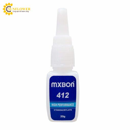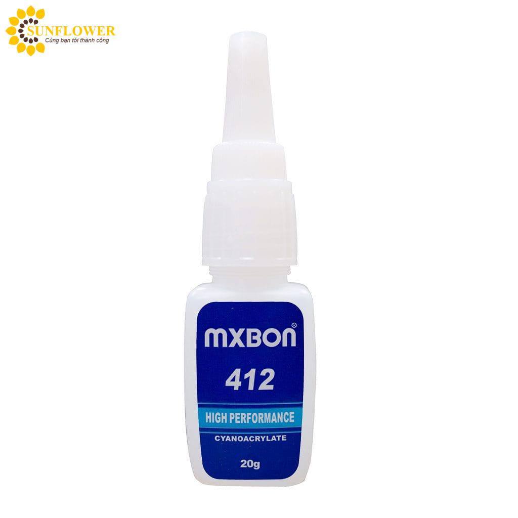 MXBON 412 là chất kết dính Cyanoacrylate cấp công nghiệp chung. Keo được đặc biệt tính toán để có khả năng kết dính mạnh mẽ nhất giữa các bề mặt không bằng phẳng, không thông thường, như là cao su, kim loại, nhựa, … MXBON 412 là loại keo một thành phần, không yêu cầu thêm dung môi, chất xúc tác, nhiệt nóng hay bàn kẹp giữ. Khi một lớp mỏng keo MXBON 102 được cho vào giữa hai bề mặt, nó sẽ tiếp xúc với độ ẩm trong không khí dẫn đến một phản ứng trùng hợp nhanh chóng và tạo ra liên kết cuối cùng.