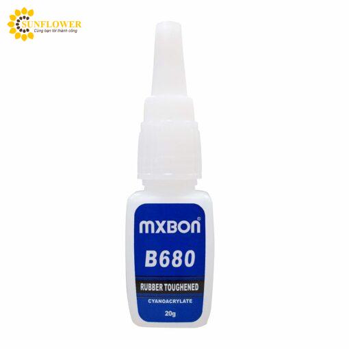 MXBON B680 là một loại keo kết dính ngay lập tức, có màu đen, dính được cao su cứng và có độ nhớt trung bình. Nó được xây dựng đặc biệt để tránh tác động của va đập và sốc, gắn kết cao su, kim loại và nhựa trong các điều kiện khó khăn. MXBON B680 loại keo một thành phần, không yêu cầu thêm dung môi, chất xúc tác, nhiệt nóng hay bàn kẹp giữ. Khi một lớp mỏng keo MXBON B680 được cho vào giữa hai bề mặt, nó sẽ tiếp xúc với độ ẩm trong không khí dẫn đến một phản ứng trùng hợp nhanh chóng và tạo ra liên kết cuối cùng.