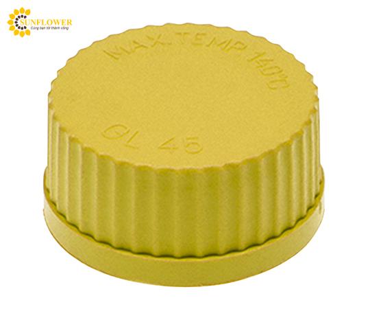 Mô tả ngắn về sản phẩm: Nắp niêm phong màu vàng tiêu chuẩn lỗ vít GL45, được làm từ vật liệu PP chất lượng cao. Sản phẩm phù hợp cho việc niêm phong và bảo quản đồ dùng y tế, hóa chất hoặc thực phẩm trong môi trường công nghiệp hoặc phòng thí nghiệm.