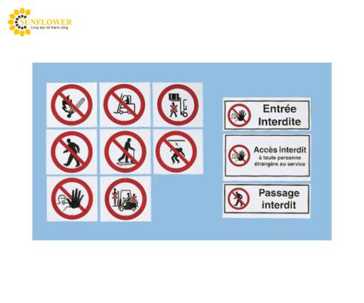 Với hình ảnh cấm dính linh hoạt trên chất liệu polyester, sản phẩm này mô tả các hoạt động bị cấm. Có hai dạng hình: tròn (đường kính 200 mm) và hình chữ nhật (297 x 105 mm). Hình ảnh “Truy cập bị cấm” có kích thước 297 x 148 mm. Sản phẩm bao gồm 1 chiếc, không có tin nhắn hay ngôn ngữ văn bản.