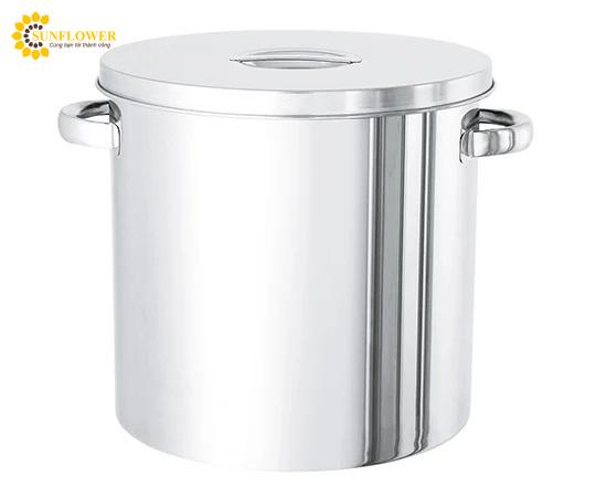 Thùng thép không gỉ tròn tiêu chuẩn có nắp lý tưởng để lưu trữ tạm thời bột, chất lỏng, v.v.