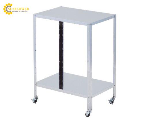 Bàn làm việc chất liệu thép không gỉ, kích thước 597 x 397 mm. Cút cao su 40 mm có nút chặn bánh. Điều chỉnh độ cao khoảng giá 100 mm, chịu tải 20 kg/giai đoạn. Dễ lắp ráp, kích thước 610 x 410 x 809 mm. Sản phẩm bao gồm các phụ kiện lắp ráp cần thiết.
