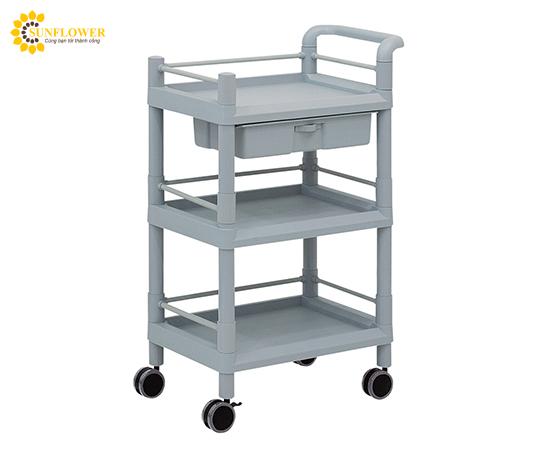 Xe đẩy hàng di động (3 tầng, có ngăn kéo, khung bảo vệ, tay cầm, nhựa PP (polypropylene), ABS, 610 x 370 x 885mm) AS ONE 3-6497-07 MSO11J