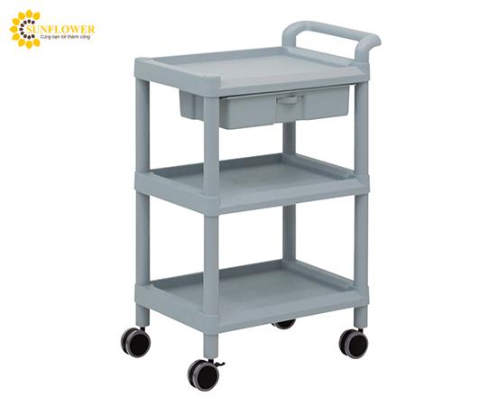 Xe đẩy hàng di động (3 tầng, có ngăn kéo, tay cầm, nhựa PP (polypropylene), ABS, 598 x 368 x 875mm) AS ONE 3-6497-02 MSO11D