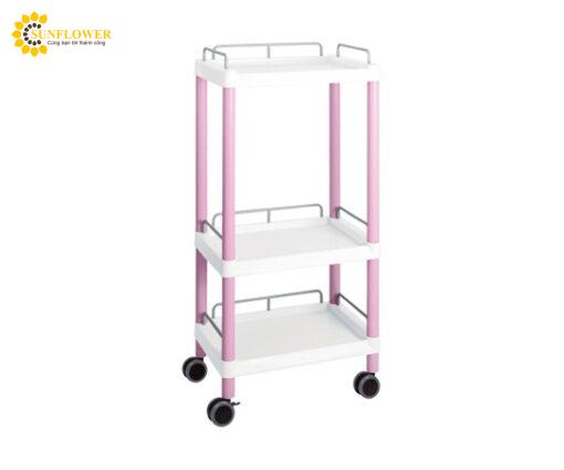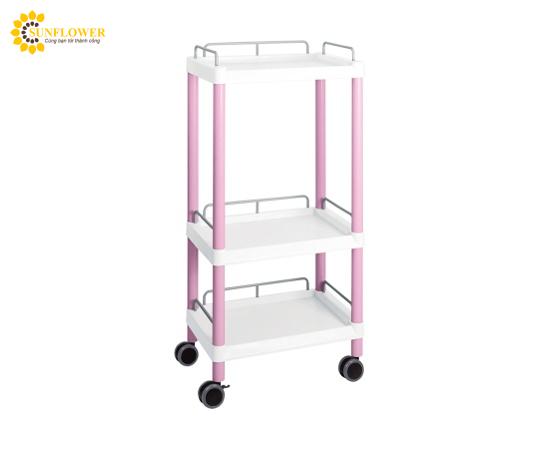 Xe đẩy hàng di động (3 tầng, màu hồng, có khung bảo vệ, nhựa PP (polypropylene), ABS, 540 x 370 x 1122mm) AS ONE 3-6642-08 ME31H
